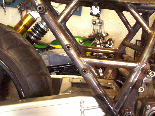 · XJR1300 swingarm with the frame line-bored at the pivot points