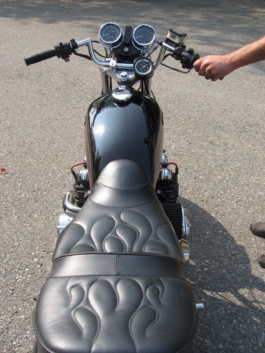 I run a pingle brass high flow petcock to help maintain good fuel flow to the Mr Turbo prepped 42 Mikuni carb, Jetting is easy with this setup , I have the accelerator pump set up to come on early and fat to stave off a lean condition. One day I plan on converting to a hydraulic clutch system , but not yet. ]