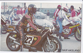 It reminds me of the paint jobs on #27 Skip Aksland's Tz750's back in the day