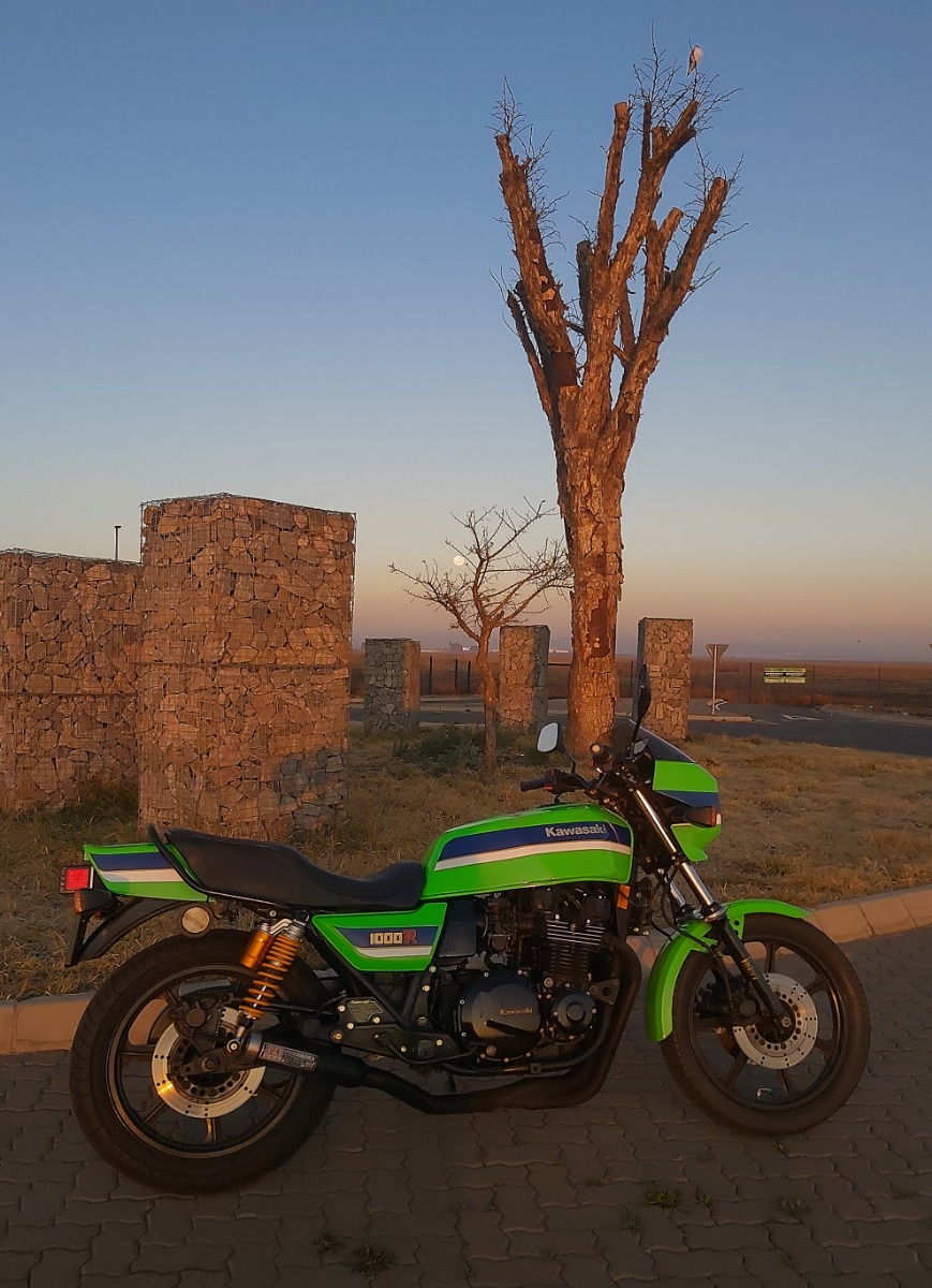 Some months after I had bought the bike I realised that the previous owner had already performed the 998cc cylinder and head modification (for un-known reasons) which was actually a blessing in disguise, as 998cc top end parts seem to be more readily available, compared to1098cc parts. I made a list of items that I needed to purchase, and after enquiring at my local Kawa dealership, I realised that eBay would be my only option for parts. Shipping to, and in Africa is ridiculously slow, so I pulled the trigger on these: '82 GPz1100 B2 instrument cluster, Full gasket set, Fork seals, Stater clutch, Stator, Flywheel (magneto rotor),Clutch plates, Clutch cable, Speedo cable, Speedo drive unit (axle mounted),J-model air-box, Carb. to head boots, Carb. to air-box boots, Air-filter, Shift-shaft oil seal, Handle-bar grips, Side-cover emblems, Tank emblems, Turn signals, Rider foot-pegs, Passenger foot-pegs, Fork brace, Lawson replica seat-cover, Carburettor rebuild kits ,Oh, and some really nice, fully adjustable rear shocks!