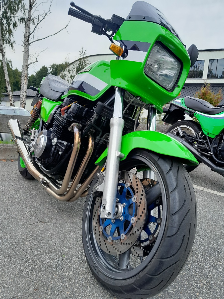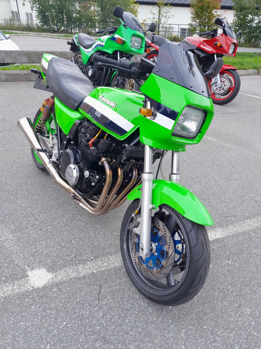 I had a Gpz750 -82 back in the days, racing and road racing, so the idea of resto-modding it, giving it the brakes and the roadholding that I had wished for in the eighties was given. Now eight years later and a stable consisting of four bikes and countless hours spent in the workshop tinkering with them, I am pretty happy that I am back riding. I use all my bikes during the summer months, not only weekend cruising but also riding to and from work on a daily basis. If I’d known then what I know now I would have saved endless hours as I tried quite a few things that didn’t work. But in the end it turned out just as I wanted, I am not looking for a concourse condition. I want it nice, but it should look like it is being used. I still have a few things to do, engine covers needs some new paint, but that will come when I change the clutch. I have a set of newly painted carbs laying around. But with the other four bikes, especially my resto-mod build on a Gpz1100 -84 and an endless stream of friend that needs carbs rebuilt, it constantly gets pushed back .It's an absolute blast to ride, I really wish that I had the 810cc engine that I had in the eighties, that power and the handling this bike has would be the perfect combo.The resto-mod recipe: