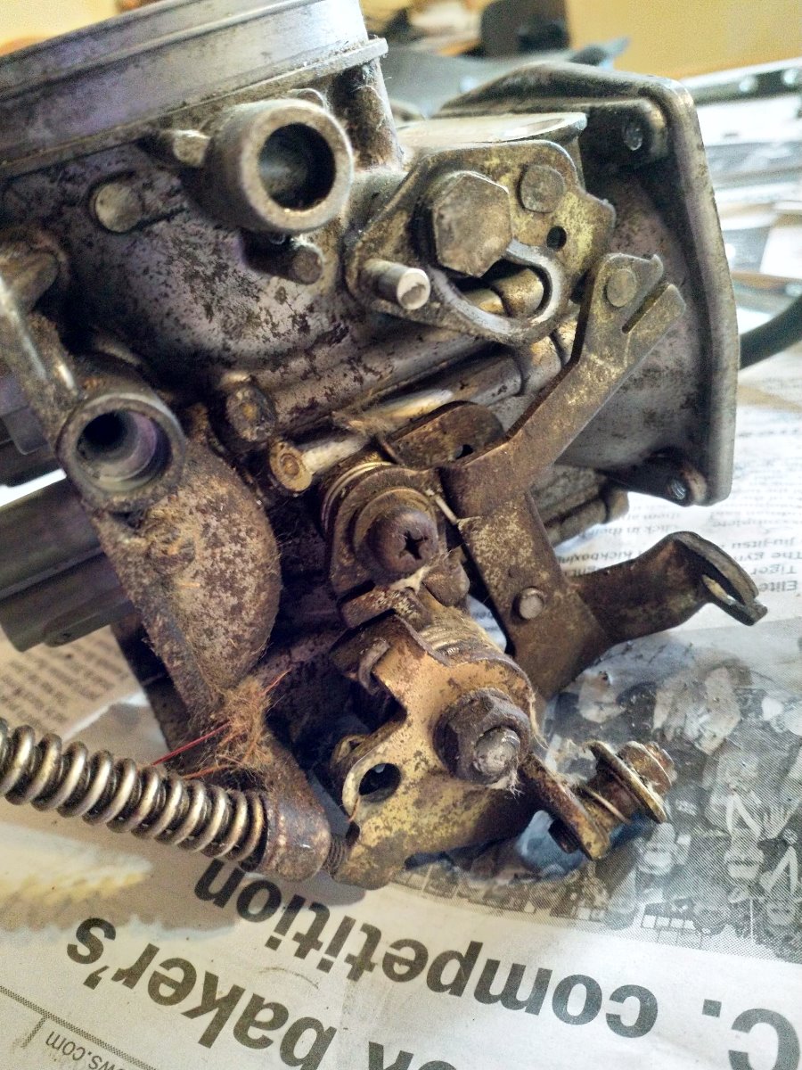 Other stuff: The hollow cams were a real surprise. The way the #60(!) chain squeaked & shed rust was disturbing as the rear wheel rotated when we wheeled it into the shop. One (only 1!) cotter pin in the master link of that farm implement chain . Carb slides not stuck! VIN sticker in VGC. Near-rust-free tank internals (still don't understand that) !. The contrasts of the varying conditions of the parts on this bike were remarkable.