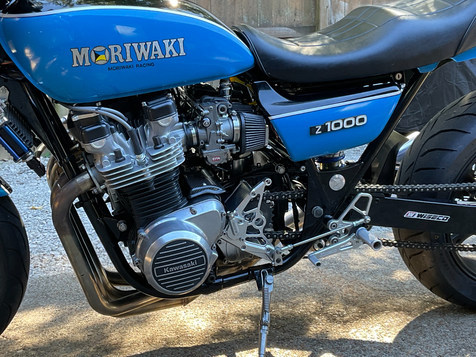 Rich’s Moriwaki 1980 project bike inspiered me to swap my ZX9-R wheel and twin shock swing arm to 2006 GSXR wheell and mono shock suspension