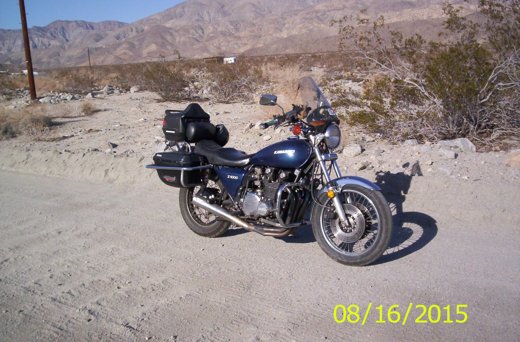 Coming back home from my daughter's yesterday, I stopped at the rest stop in White Water to take a break, have a cigarette and take a leak. It's just at the point where you can feel the hot air coming from the desert. A guy was with his little ankle biter dog and watched me as I parked under a tree. I could tell he wanted to say something to me and as I turned around taking off my helmet he said, "nice bike".