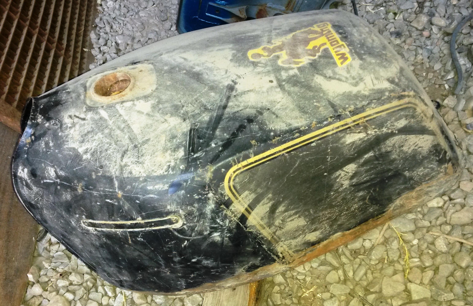There is also this KZ1000E tank It looks pretty good and has been lined, lower left has some rust on it and looks like it has been patched on the lower left corner, These tanks are hard to come by in any condition so it might be worth getting and restoring.