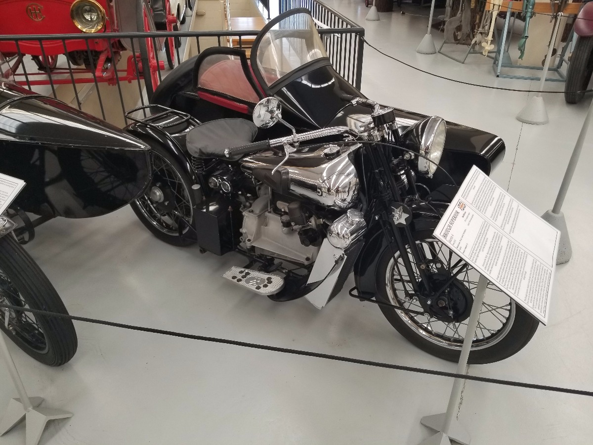 This is 1 of the 10 Brough Superior 4 cylinder liquid cooled motorcycles ever built. Two rear wheels and built to haul a sidecar.