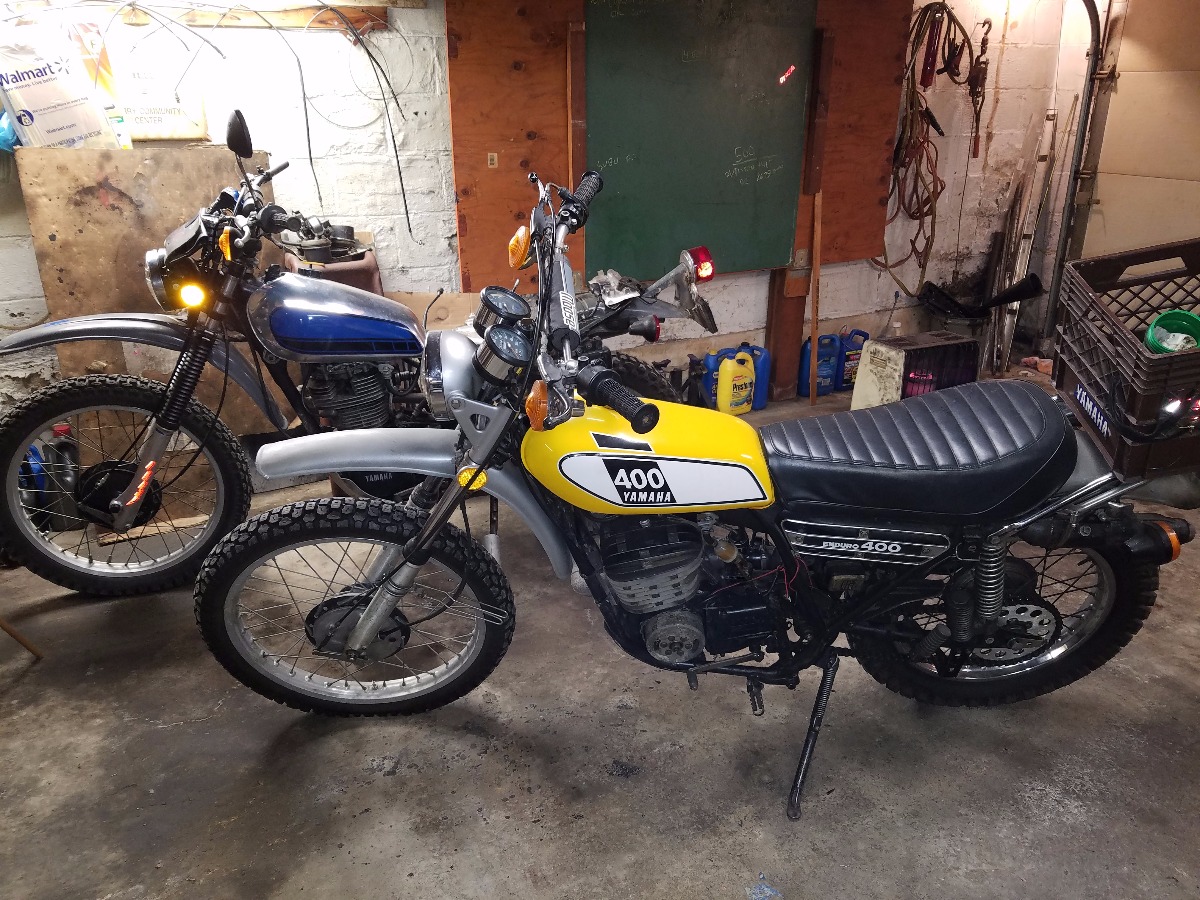 thats my good dt400, it is in line for 12v conversion when I get the funds...I just sold the XT500 in the pic with it...it got to be a pain in the ass to kick start at my age (the 400 is easy) so I used some of the funds to get a bike with 12v, disc brakes, and electric start, my 83 KZ1100. a step into the modern age.
