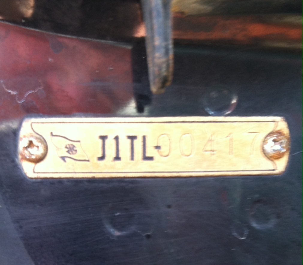 Hello Ed, Yes this is it! Now for the Bit I did not say. There is no Registration stub. The Old timer is deceased who was original ownwer. His grandson sold it to me. I was buying it either way. But the frame tag is: J1TL 00417 Then this is on left side crankcase LFE 01062.