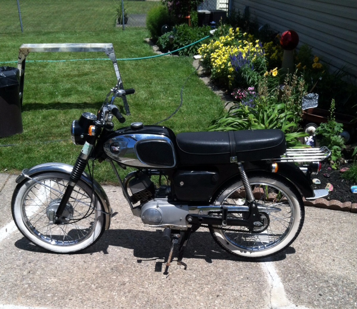 I don't know if anyone ID'd it yet, but I assume it's a D1 or something related. I think the seat should be two-tone white/black. There is a guy on ebay that made a pattern for the seat cover from my buddy's bike, so if he's still there, he can probably make a cover cheap, like $20... if you are thinking of an original resto.