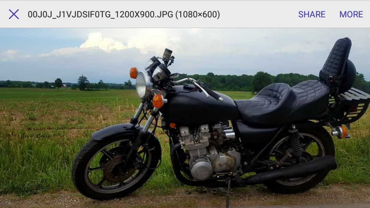 Both wheels, disk rotors, exhaust, and front fender have been changed to non-original items (why - was it in a wreck?); those silly velocity stacks on the carbs mean it has been sucking unfiltered grit, road grime, etc., etc. into the engine through the carbs so the engine most likely has a lot of premature wear (notice the bike is on a dirt/gravel road so lots of opportunity to suck in grit); the carbs are leaking like mad; that black paint job on everything including the fenders, shocks, exhaust, gas cap, etc. is a mess; etc.
