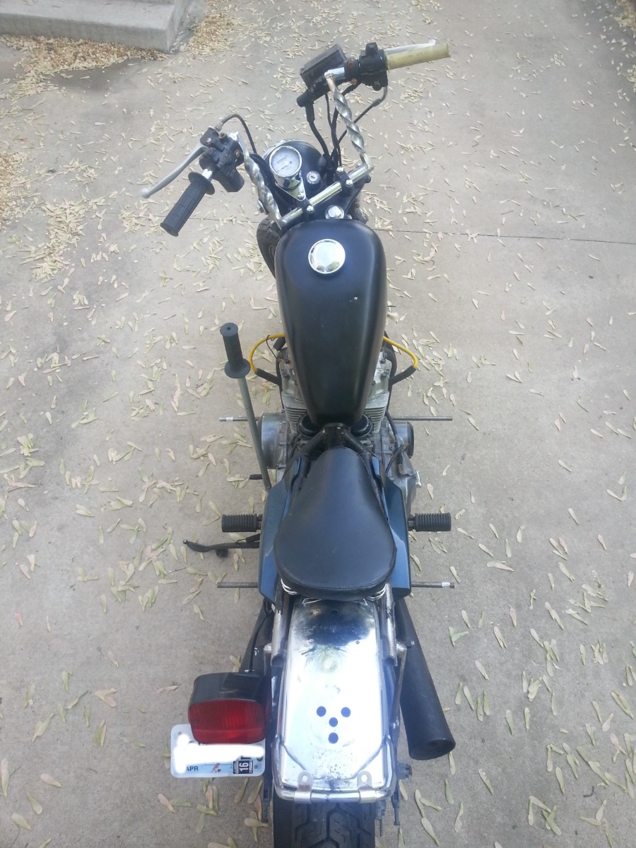 PURE custom. This is only one example in the endless "improvements" that can be done to one little bike. Love the custom suicide shifter and custom rear fender from his description in the emails. I was selling a running XLH1000 for 1800.00, yet had more enjoyment in pushing that one around too. I just wonder if he had two left arms, or just did not use the clutch when he shifts.?