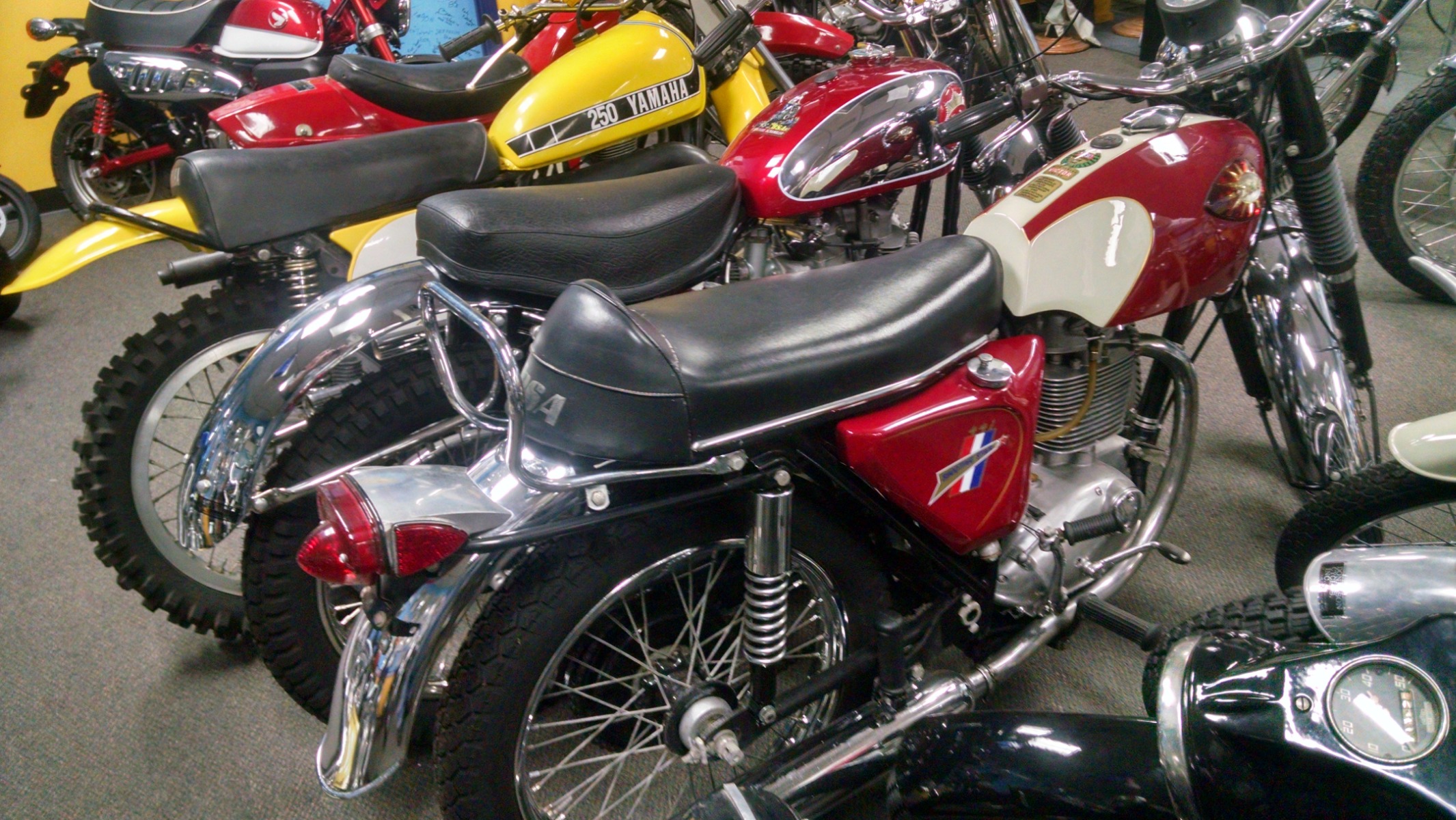 I took a bunch of pics in the museum today, and if you are into the old limeys (beezers- BSA'S and Triumphs) Carl has the LAST BSA his dealership received in 1972 - has never been started - shows 4.5 miles on the odometer.. A long ways from england.. I guess from being pushed? Notice the spark plugs are not in the engine.