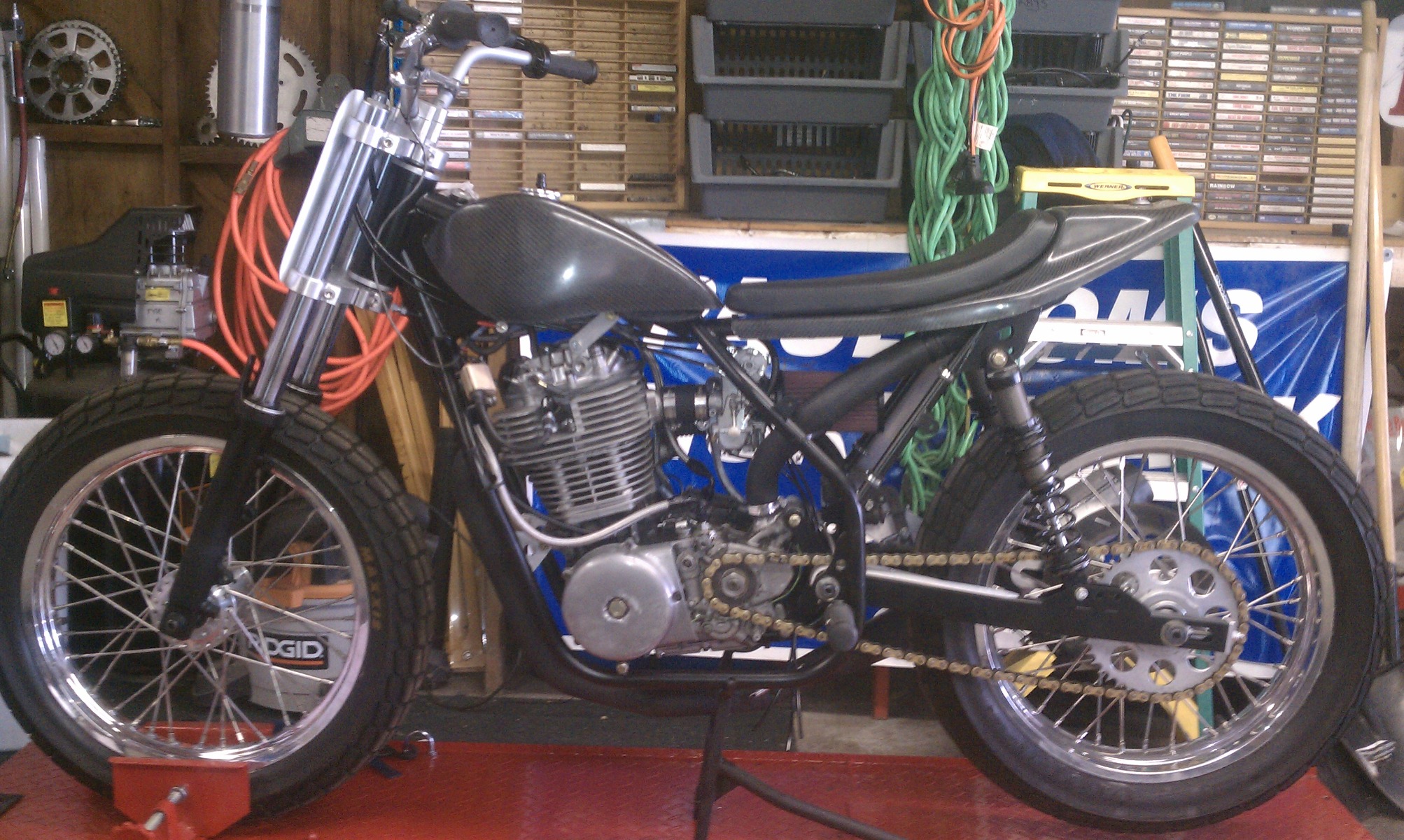 In a former life - KZ-based dragbike - CrMo car tire chassis, 1395cc, Hahn Racecraft turbo system, VP C16, Orient Express 3-spd auto, 7.80's @ 165-170.