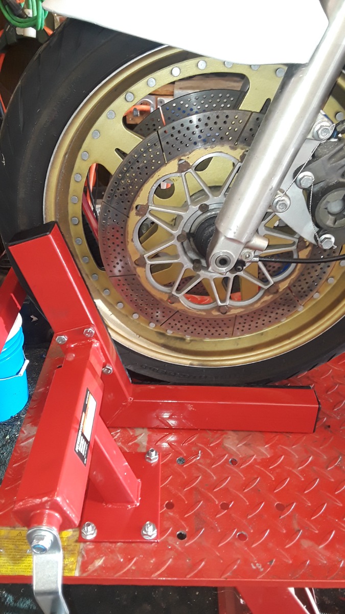 A buddy recently purchased the same HF lift that I have. He was so taken with the IDEA of the lift, he bought me a front wheel clamp for my 20 something year old lift. Thanks Gregory!