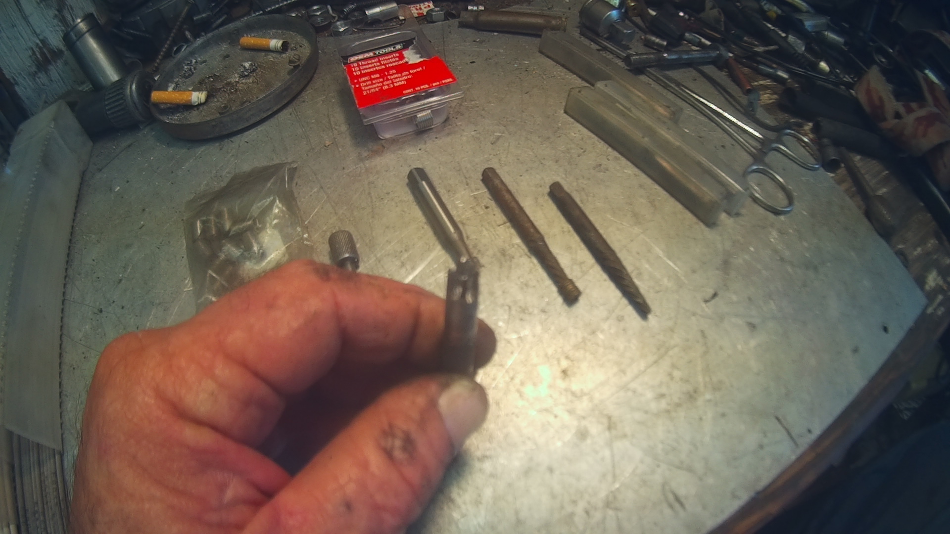 While tapping on the broken piece you hold the punch lightly allowing it to bounce. Eventually the broken piece begins to bounce as well allowing it to be extracted with a magnet. It will go in just so far then becomes sloppy in the hole. Reverse drills are the best way to remove broken bolts but they can also break causing you the same problem. All just a part of wrenching. Everyone has been there. :whistle: