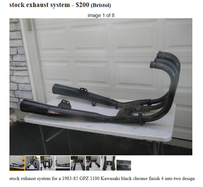 01 Oct 2020 14:42Oh man a stock exhaust would be perfect...it’s got a junk no name thing on it..bluej58 wrote: It's too bad you aren't a little closer, these pipes make me wish I had a GPZ