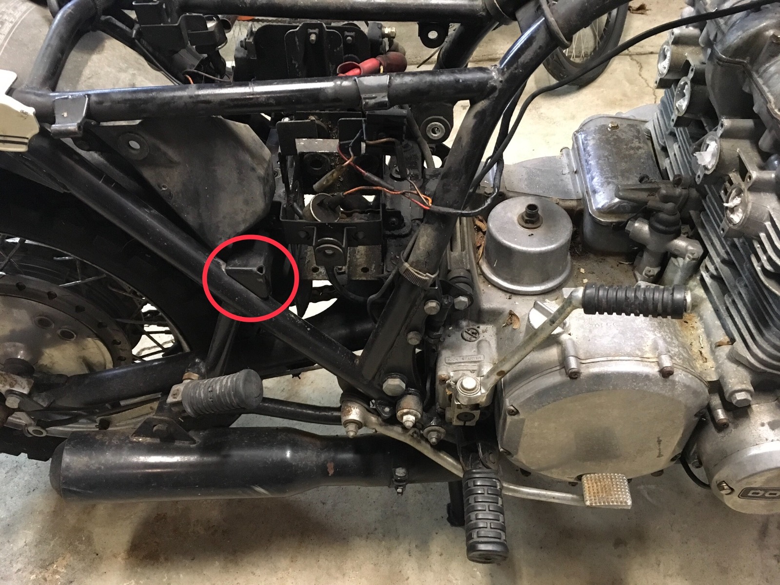 I saw one of your mistakes. :lol: :blink: The Lshaped bracket the supports the battery box on my 900A4 project was never factory welded on the right side. See photo, you can see where it had been shifting and rubbed the paint off on the high side of the frame tube. My mistake I had it kinda welded without having the battery box in place and I welded it in wrong. Sucks that the frame is finished and now I have to grind it down and re-weld