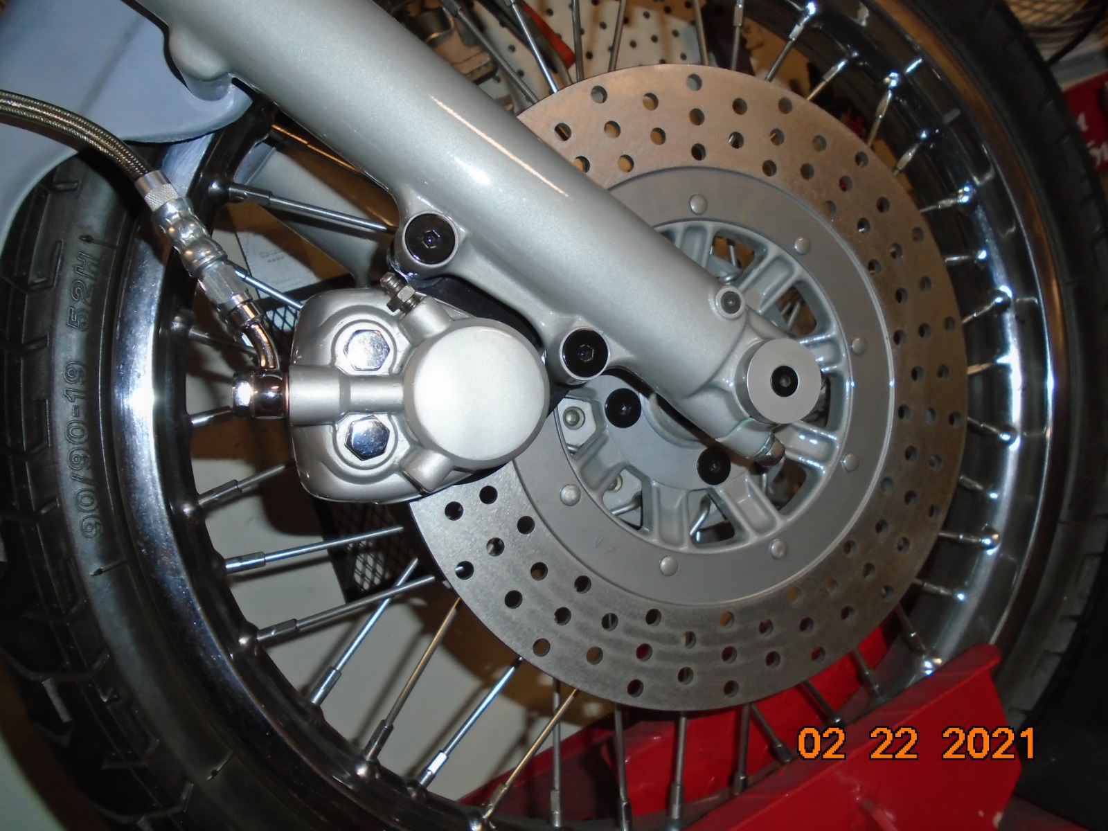 The rear brake plate altered also cut that bottom part off and welded a lug on for brake torque arm. Plus I always cut those front fender bracket tabs off of the lower legs that they use some other models? I guess I'm bored drinking morning coffee!