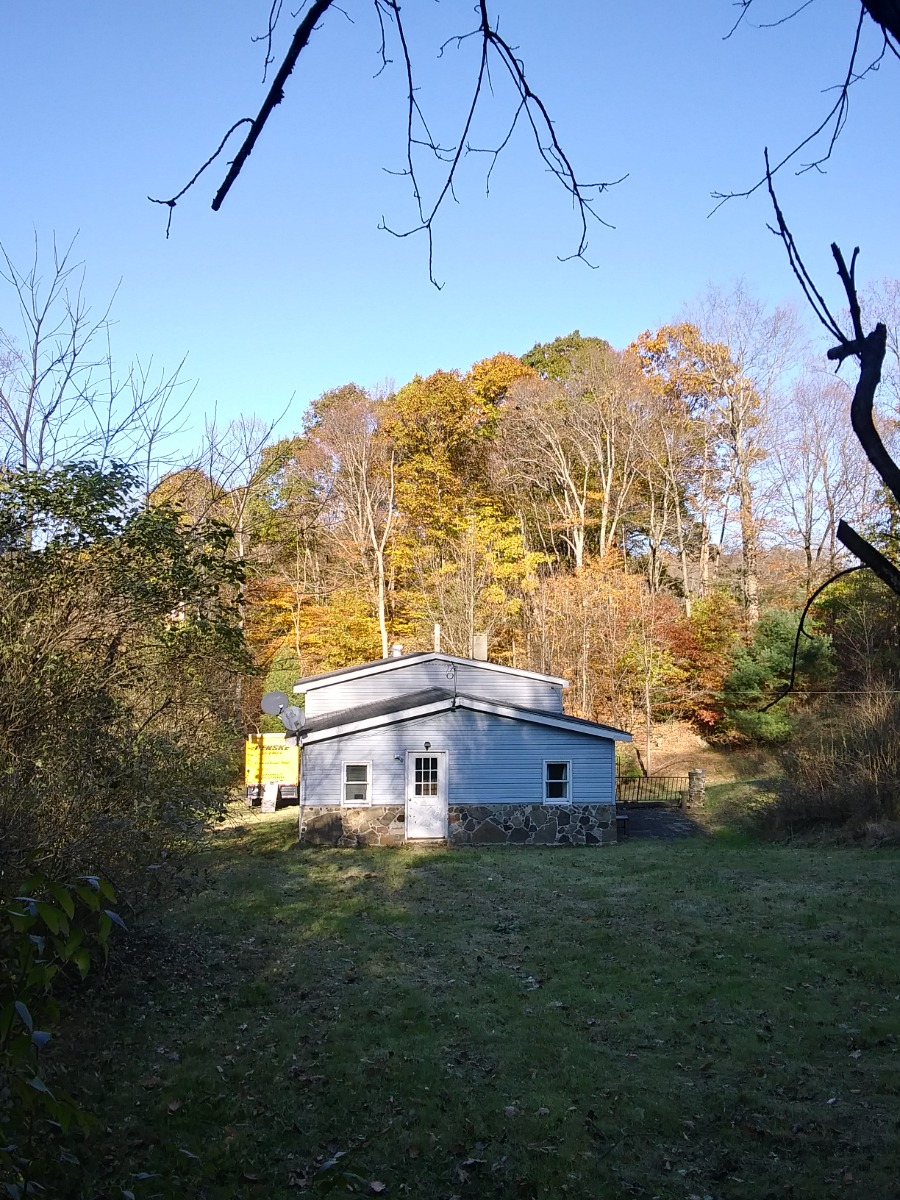 Well made it safely to Pennsylvania. It was a long and winding road, that's for sure. The bike made it fine, and that Habour Freight stand and the plywood box worked out great. Have almost 0 cell signal and no internet where I live, ( don't know if that's a bad thing or a good thing ). I have to walk up into the corn field behind my house to make a hone call. Anyway a pic of my house, the bike in the house, and the field.