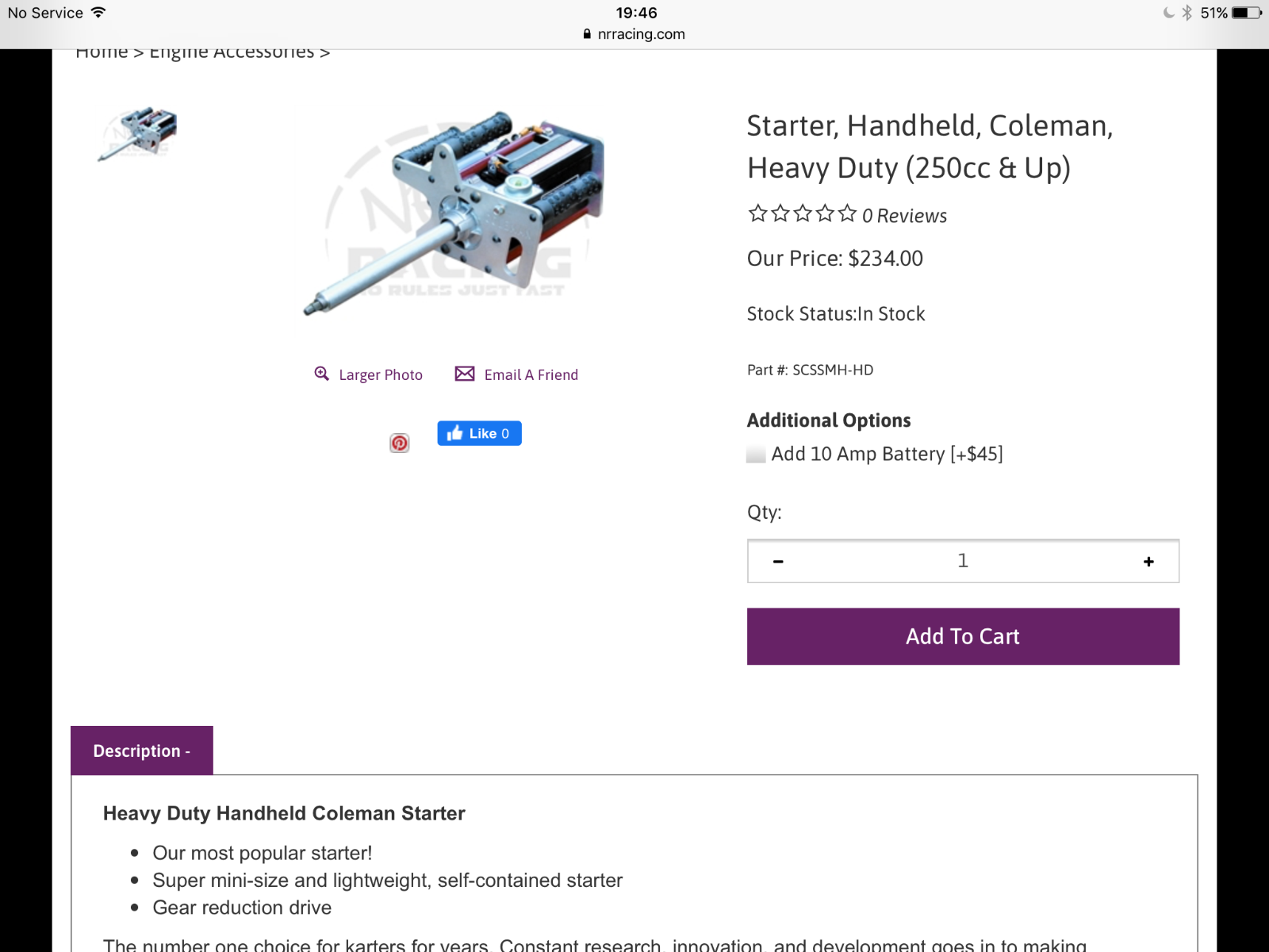 No worries, the starter clutch reference was to highlight the gearing required to spin the engine with an electric motor that size. As you can see the below "off the shelf" item also uses reduction gears