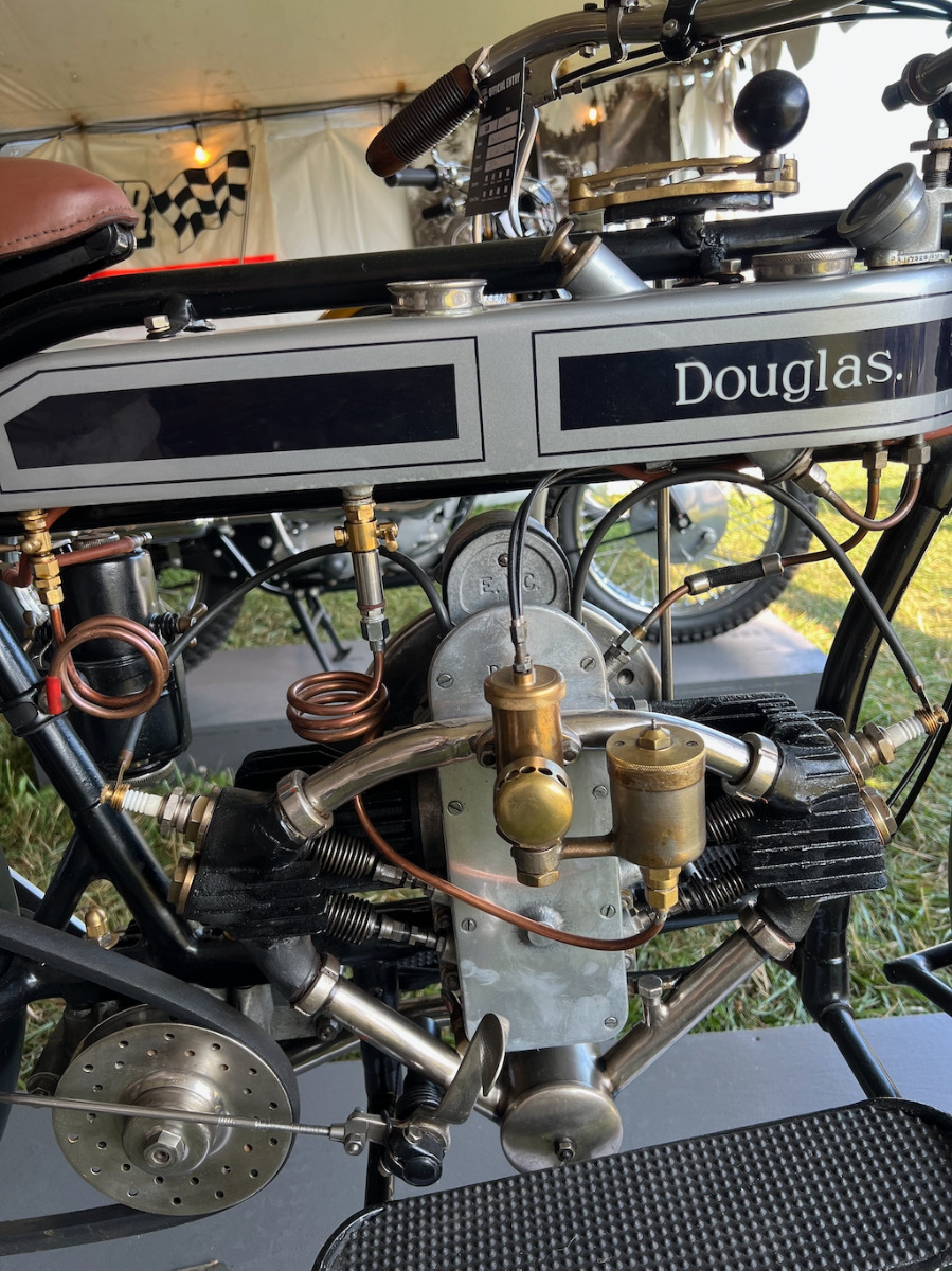 It was nice to see you, slmjim. I'm glad you stopped by, because I didn't leave the VJMC tent at all during business hours. I didn't even walk around the infield to see the [Royal] Enfields, though I did go next door ("next tent"?) to visit the British motorcycle club. They had some amazing machines, including a 1920 Douglas which is genuinely a work of art. We were low on volunteers - and one person who signed up for two shifts didn't show up at all - so it made more sense for me to remain in place. I did poke around the swap meet briefly Thursday afternoon but didn't see anything I couldn't live without.