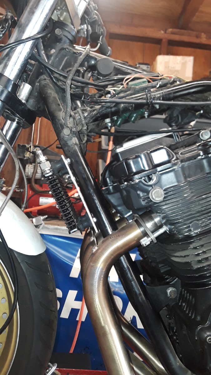 It is presently back on the lift undergoing a head transplant! It is an 83 Suzuki GS1100 and it's in the process of getting a cylinder head from a (late) 80s Maybe 1990, GSXR 750