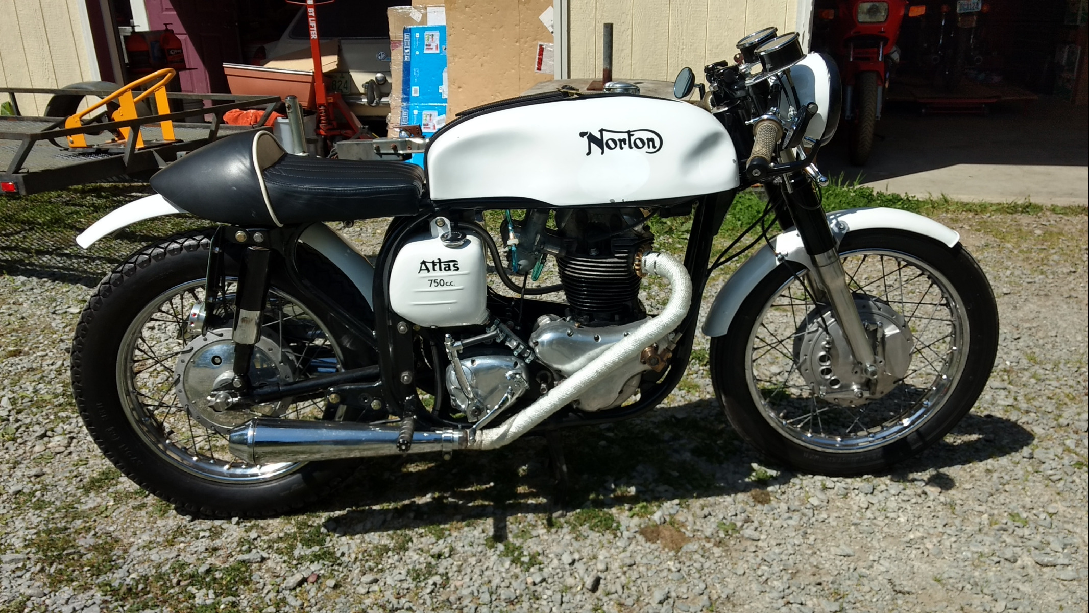 Here's a bike we resurrected for a friend a couple of years ago. It's a 64' Norton Atlas 750 that he calls the London Death Machine. It was in two different shops and both charged him money but from what I could tell neither shop did a damn thing. We went through the brakes, repaired motor mounts, fixed the oil tank and battery box, rebuilt the forks, rebuilt the carbs, replaced the wiring harness, designed and built gas tank mounts and seat mounts.