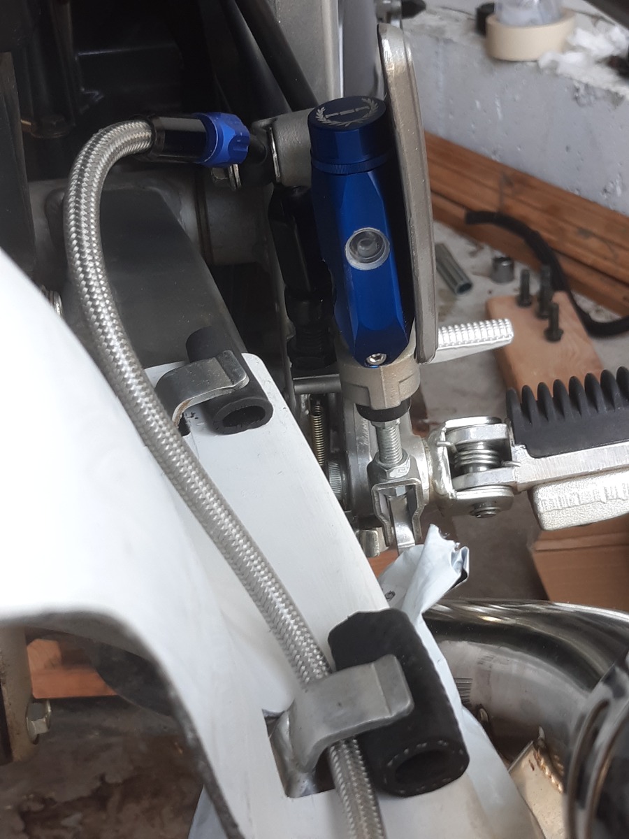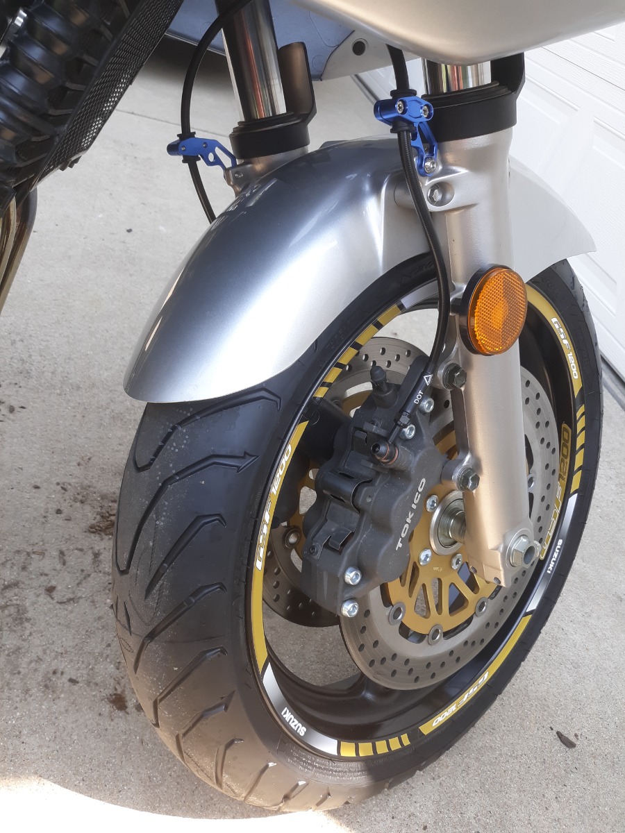 Also did stainless brake lines front and rear. A cool thing is the small piggyback rear reservior. It was listed for GSXR not Bandit but the port and bolt hole lined right up with the master cylinder.