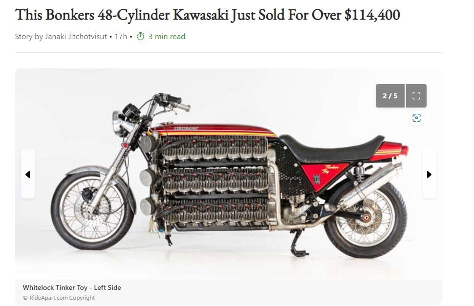I guess some people just have "too much money" !!! This 48 cyl stroker is an amazing piece of engineering and I commend Simon Whitelock on putting it together and making it run, however $114k for a virtually un-ridable 600kg display piece seems absurd !!!!!