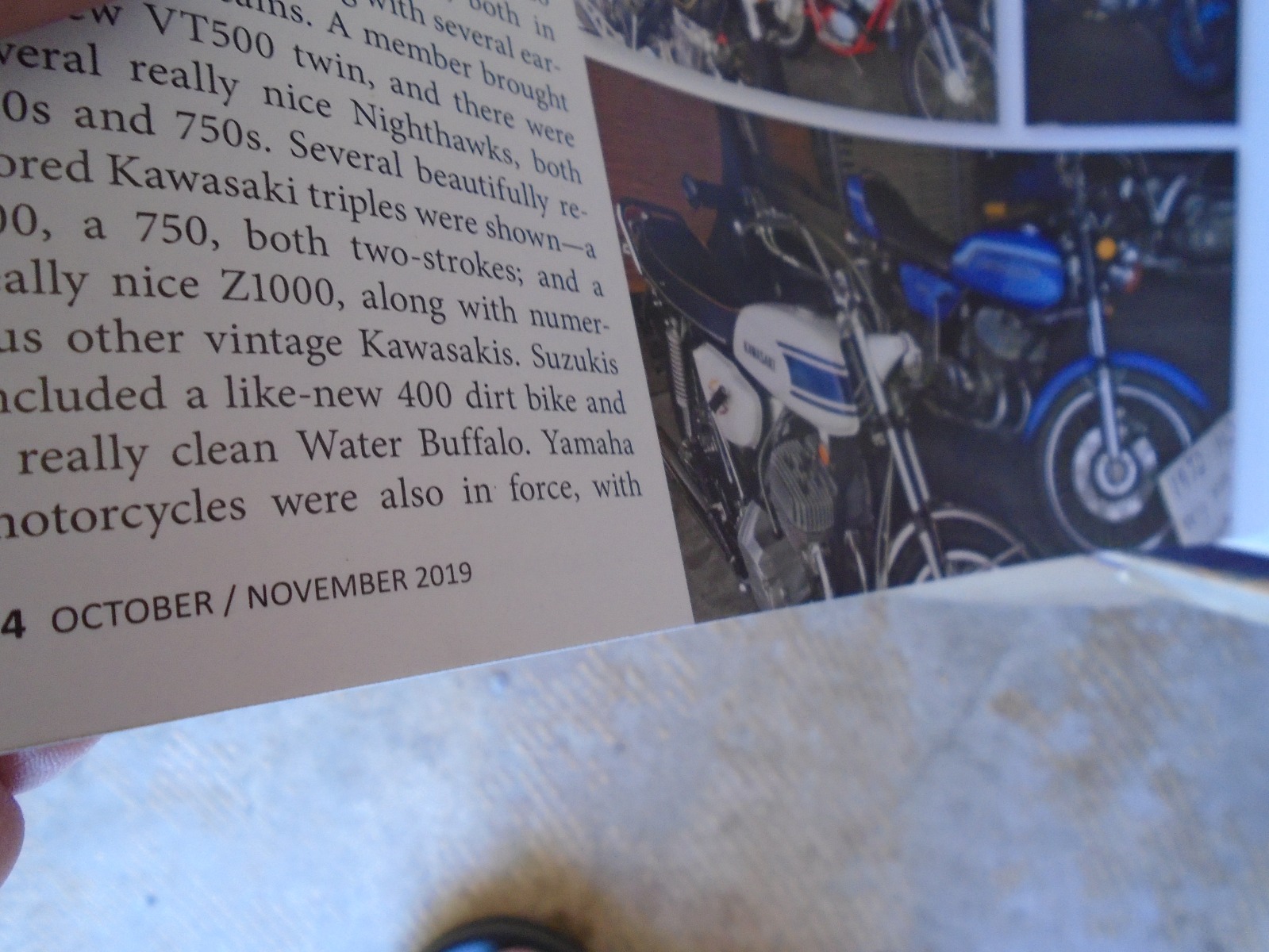 Thank-You soo much my Friend! While i'm not much of a picture taker, had the last 69 H1 and H2 1972 featured at local events. Of course midwestern folks not NEARLY as nearly as picky as our bothers in arm across the pond. But they both won those "pressed-wooden" placards, ha. Reference to what magazine it eventually was featured in, VJMC rag. Did somehow pull-up a pic of it's gauge package and when i was a centerfold, hilarious. I was a true centerfold, stapling was right at the start of the article, he. Never wanted/needed the notoriety but my Buddy Mark insisted he wanted to compose an article. So my 2-seconds of fame i suppose.