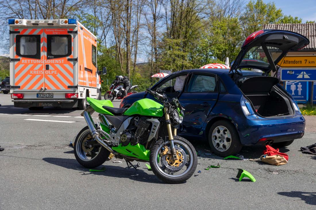 The biker collided with an 82 year old eldery mans car (Audi) who made a left turn on opposite road side of the bike rest stop crossing the bikers priority lane.