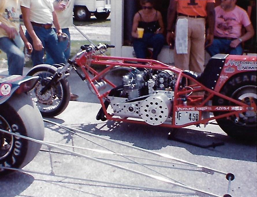 In a former life - KZ-based dragbike - CrMo car tire chassis, 1395cc, Hahn Racecraft turbo system, VP C16, Orient Express 3-spd auto, 7.80's @ 165-170.