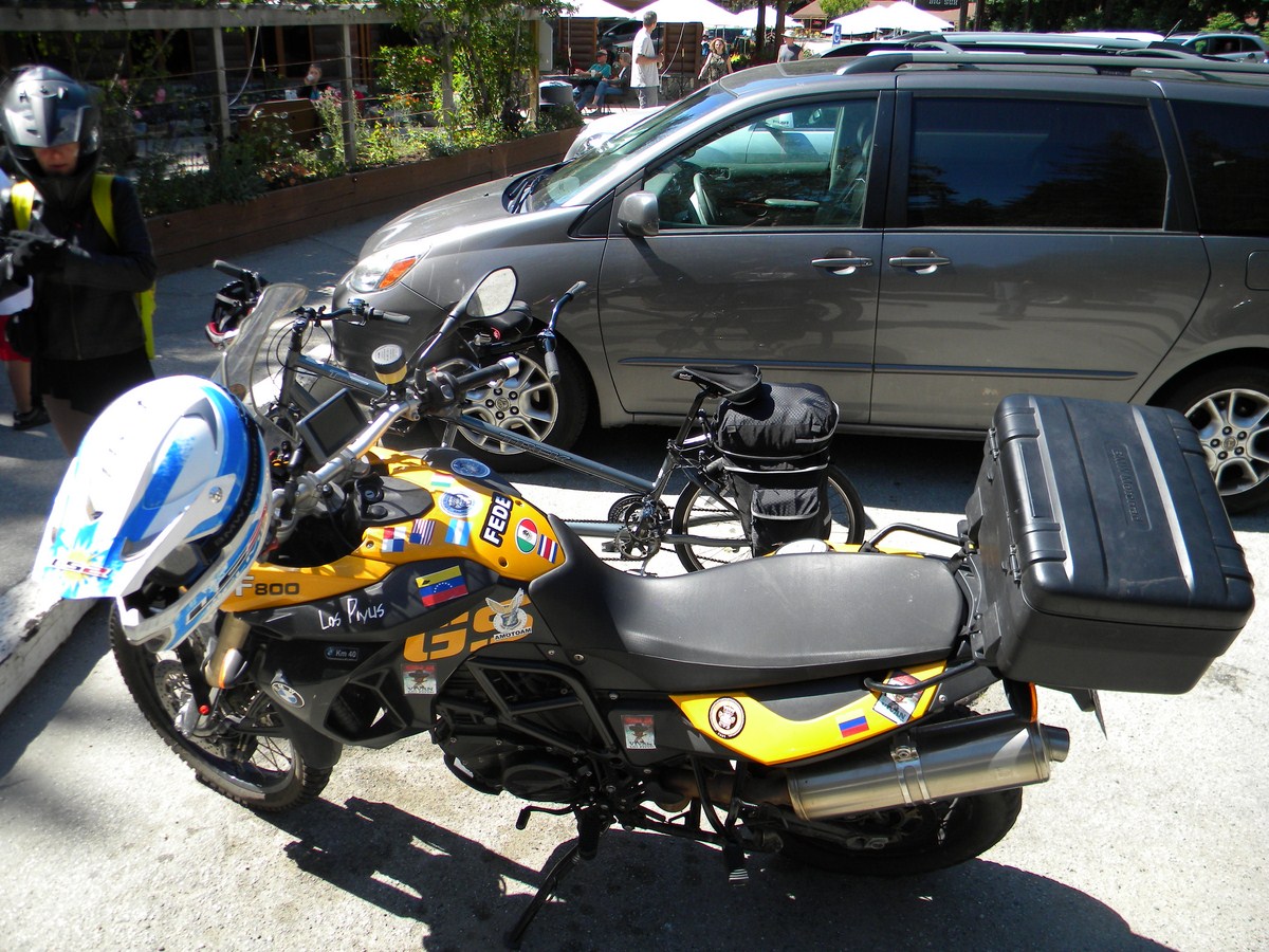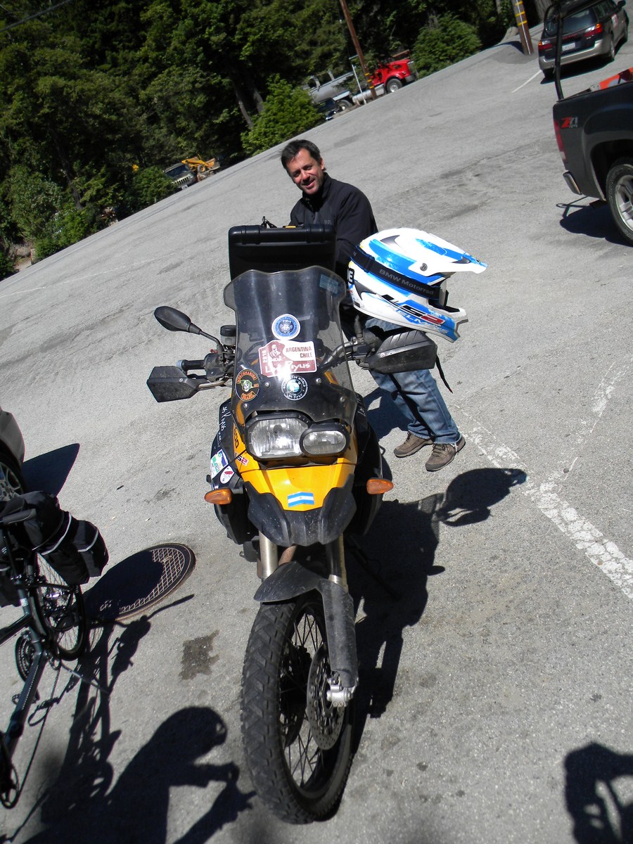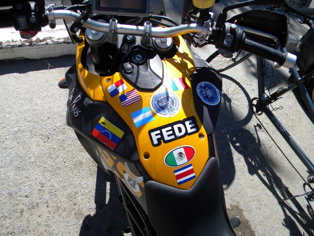 this couple rode this bmw f800 i think for 14000 miles...from the tip of Chile i believe...little language stumbling but the wife spoke enough english to correct me when i said 1400 miles...she said no 14000