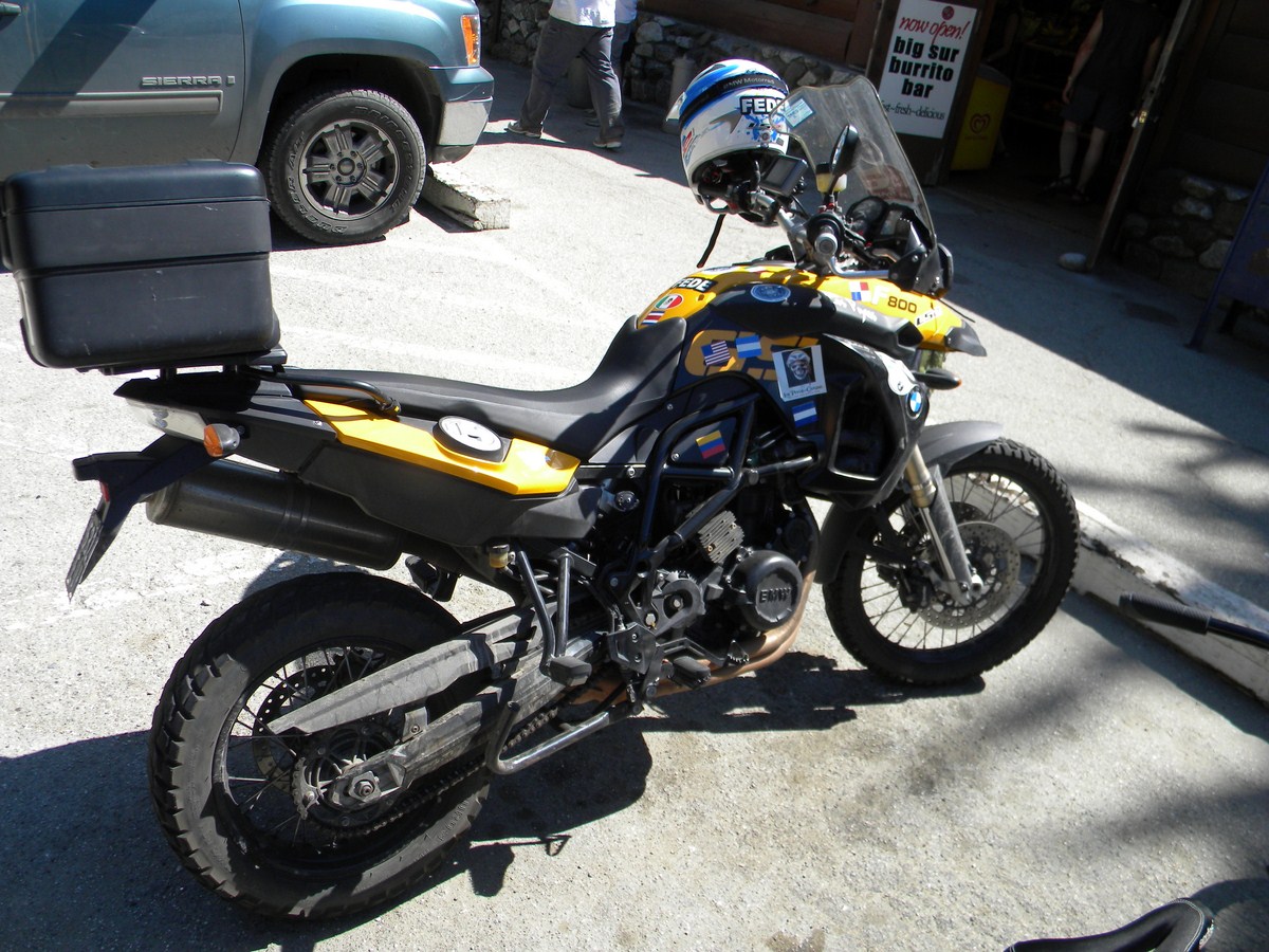 this couple rode this bmw f800 i think for 14000 miles...from the tip of Chile i believe...little language stumbling but the wife spoke enough english to correct me when i said 1400 miles...she said no 14000
