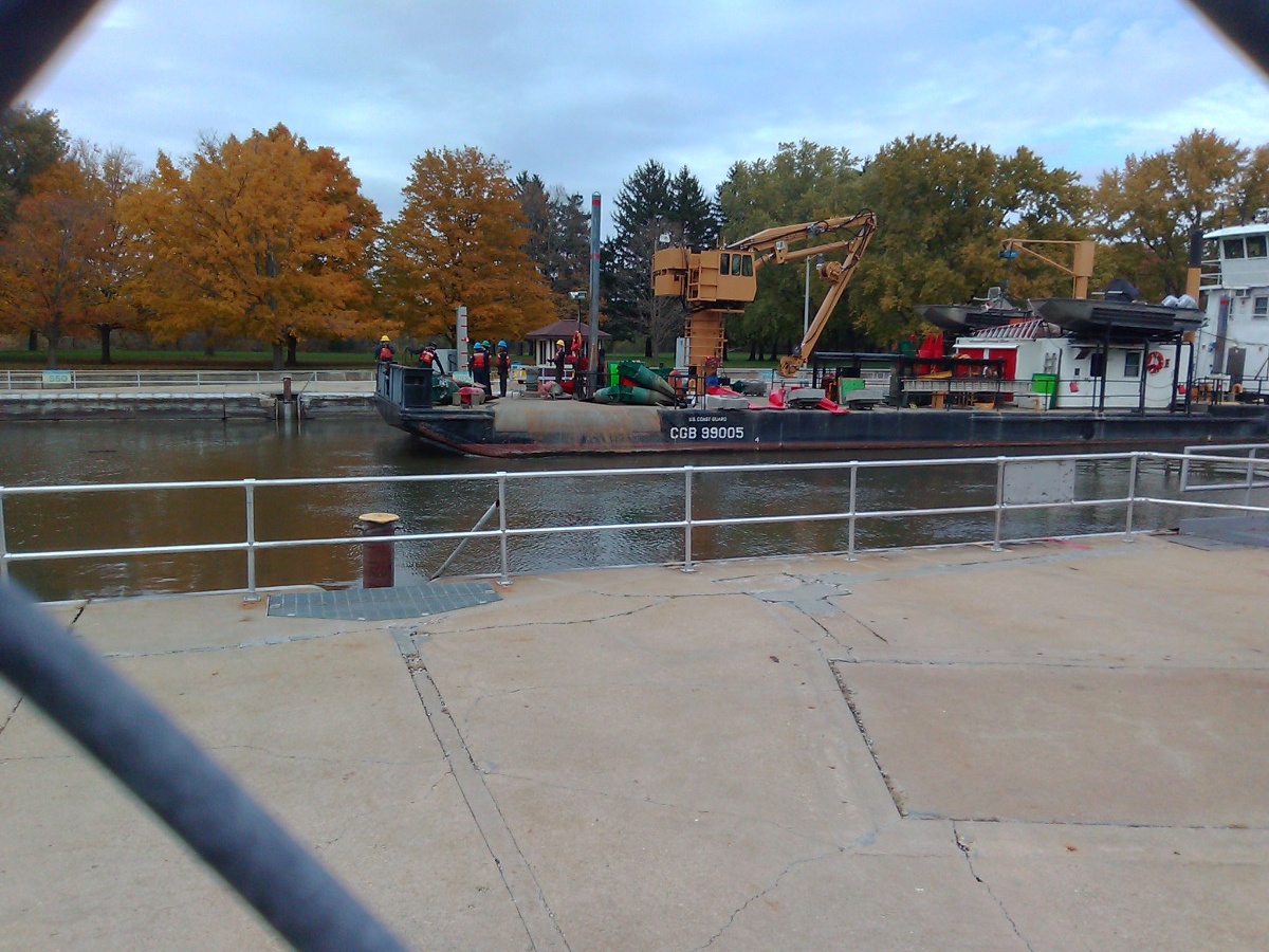 It appears that they were doing something with the river buoys, they can get loose in high water and we have had a lot of that lately.