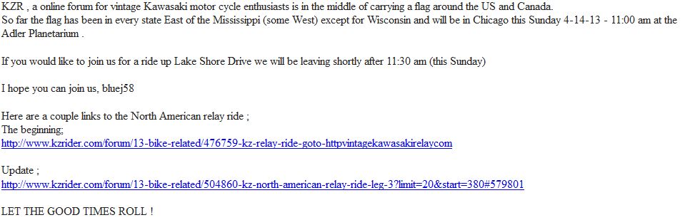 Yesterday was a great time and a big relief,I have been worried about doing some things to the bike like replacing points and condenser, front brake seals and plugging a couple leaks before I moved the flag.