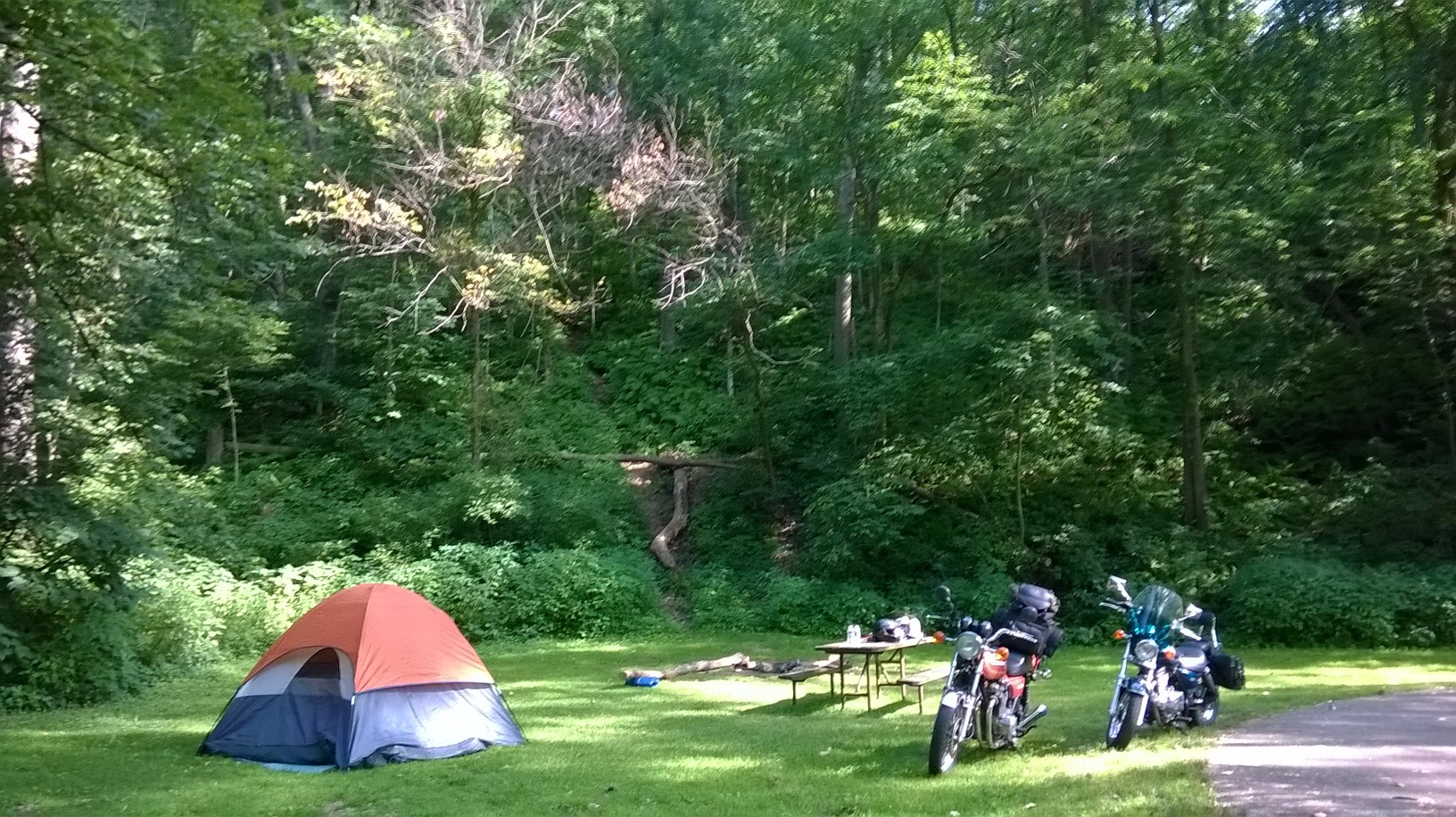 We rode to the Palisades Thursday and found a nice spot to camp in the back of the park site 111 , very private the first night.
