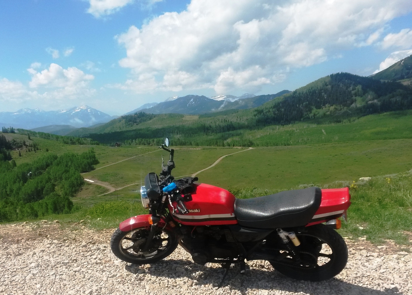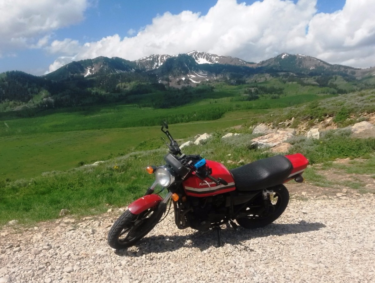 On Guardsman Pass proper. Empire Pass is directly behind my bike about 2 miles. Gotta love the BLING on the headlight.
