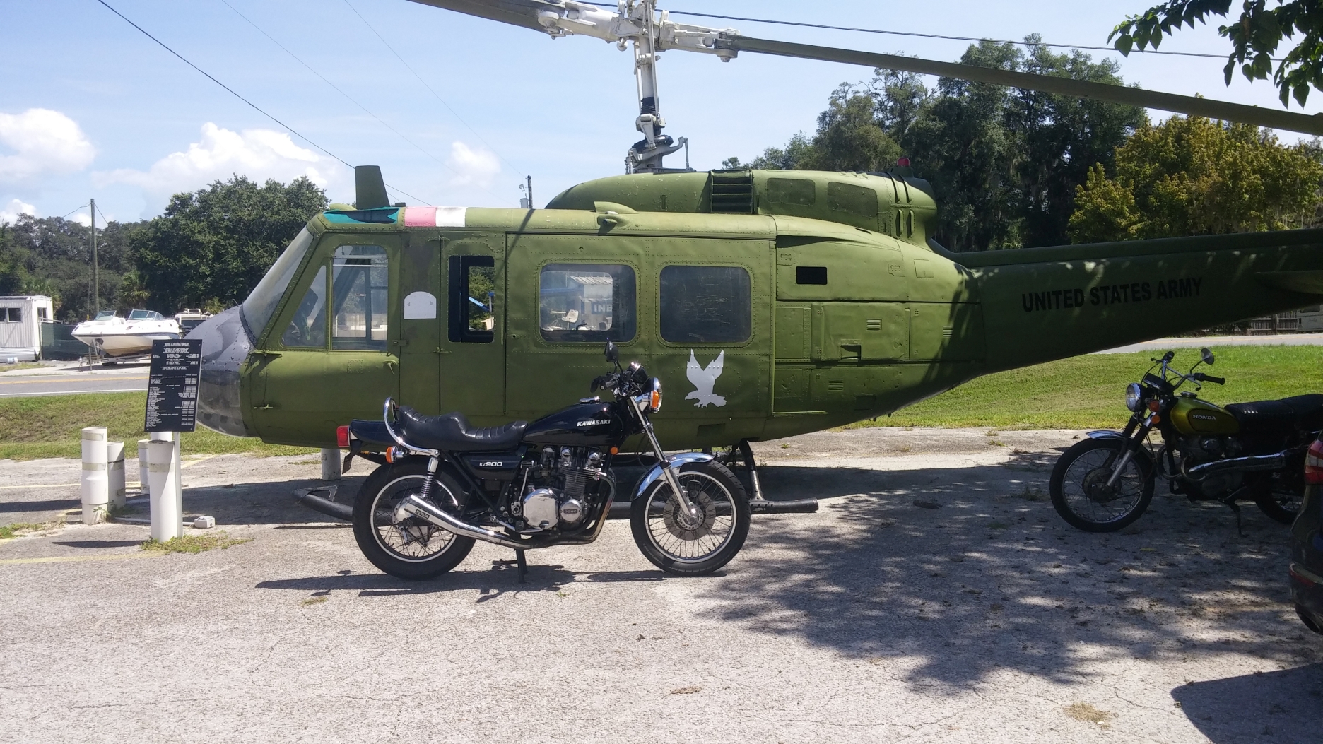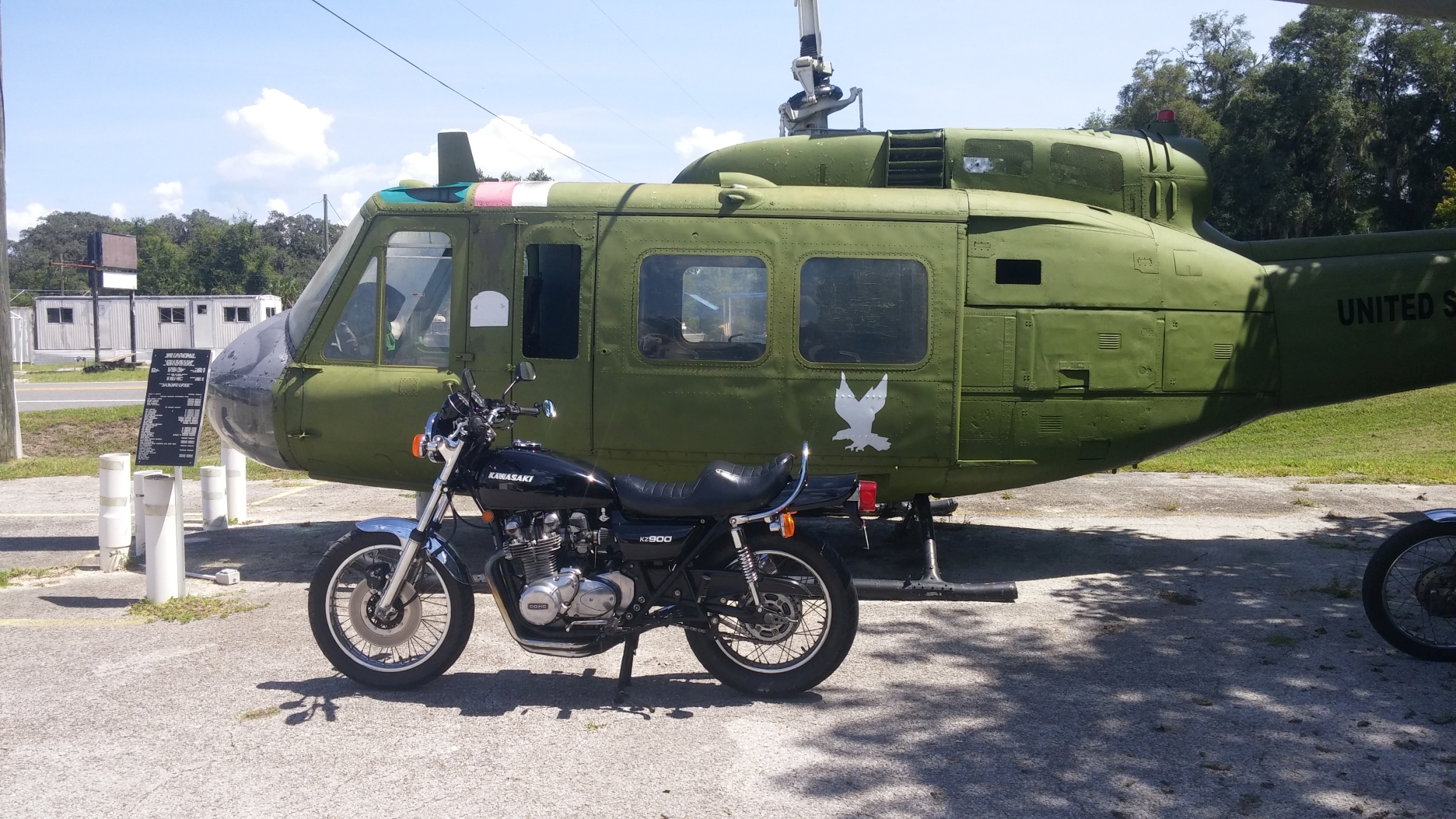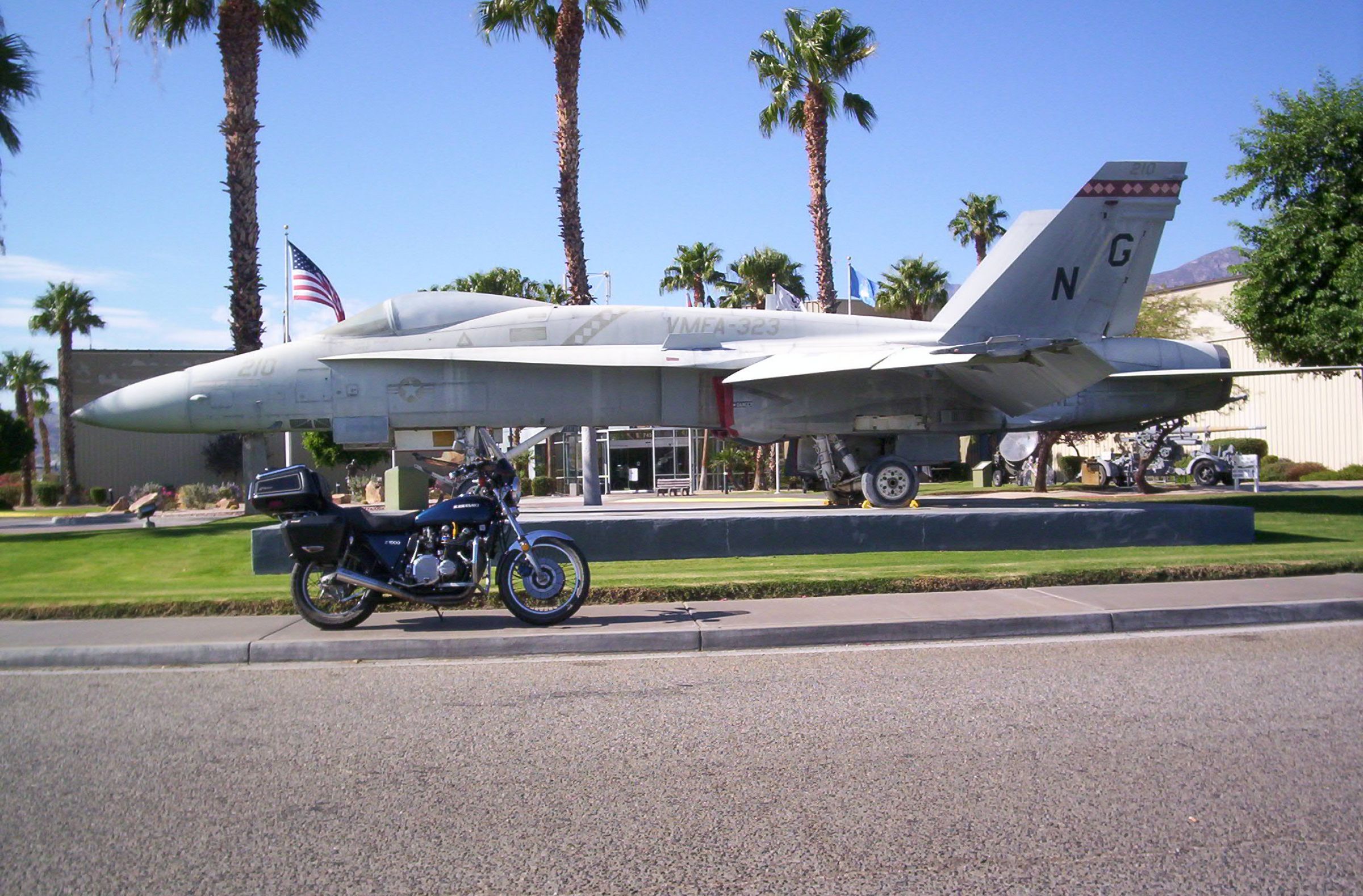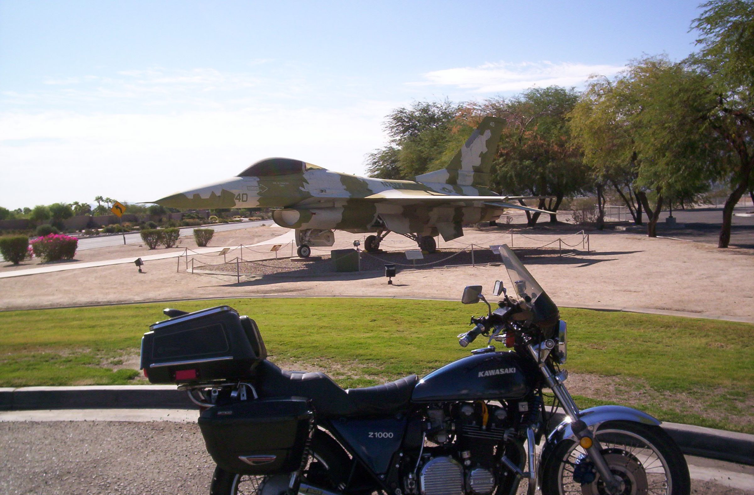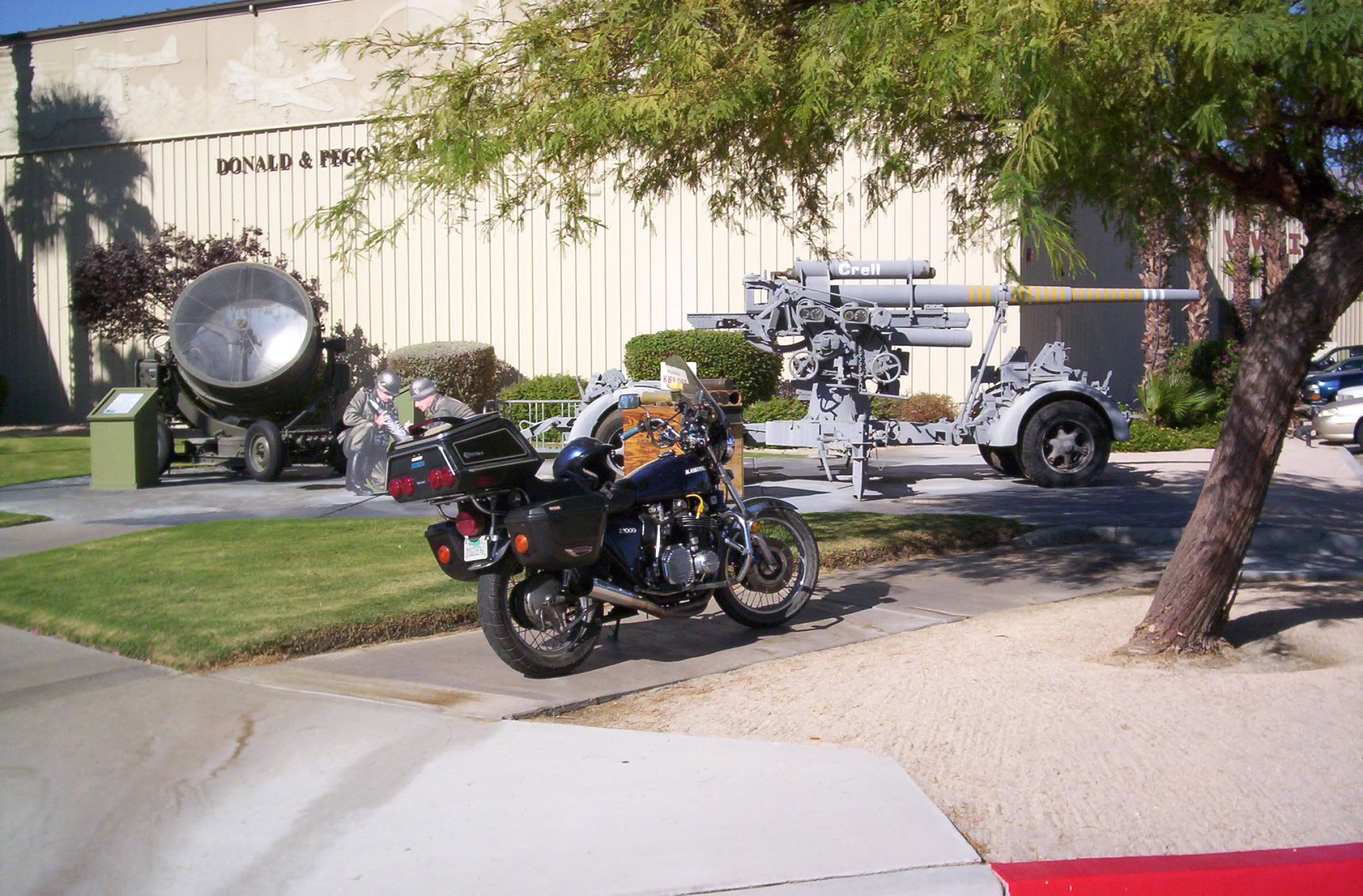 I am stealing the following thread idea from another forum. As the saying goes, "Imitation is the sincerest form of flattery". Just as the I ripped off title states, take a ride and snap a photo of your KZ with something military related as part of the picture. It can be a piece of weaponry, monument, base, soldier, etc, ....