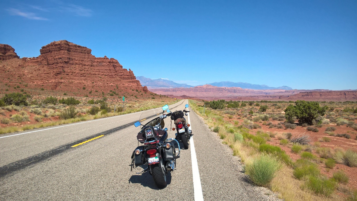 We wanted to do a loop around Lake Powell but the ferry was down for repairs and there were fires around Bryce so we ended up riding on 95 all the way to Hanksville and back.