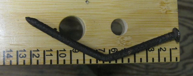 The offending object; 13 cm. (about 3.5"). Not sure, but I believe it was bent prior to my encounter with it: