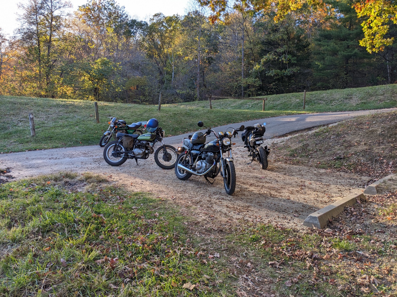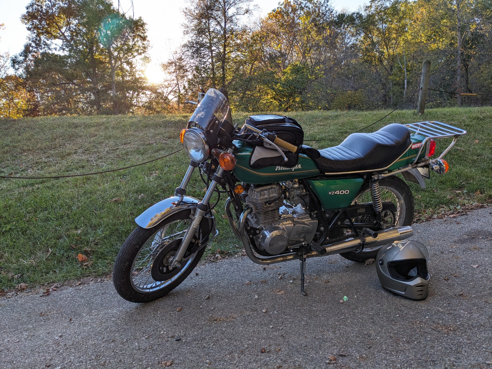 Hey everyone! It's been a minute since I've been on the forum! Had a bit of a rough start with my KZ, as she was my first motorcycle and I pretty quickly got overwhelmed having to fix what was wrong with her before I could start riding. But the kind people here helped me through, I got it figured out, and since then I've done more electrical work, rebuilt the carbs, replaced the petcock, changed the oil and filter, rebuilt the brake caliper, got the tach and speedo lights working (yay I don't have to guess my speed at night anymore!) and added a few personal touches. I rode her daily during the summer and she only left me stranded once (but that was rider error anyhow). Anyways, I live in the Bloomington, IN area and there's a ton of beautiful places to ride. My personal favorite is Old State Road 37, Monroe Dam Rd, and 45 heading east. Here are a few pics while I sit here and sulk about the impending sub-zero temps up here: