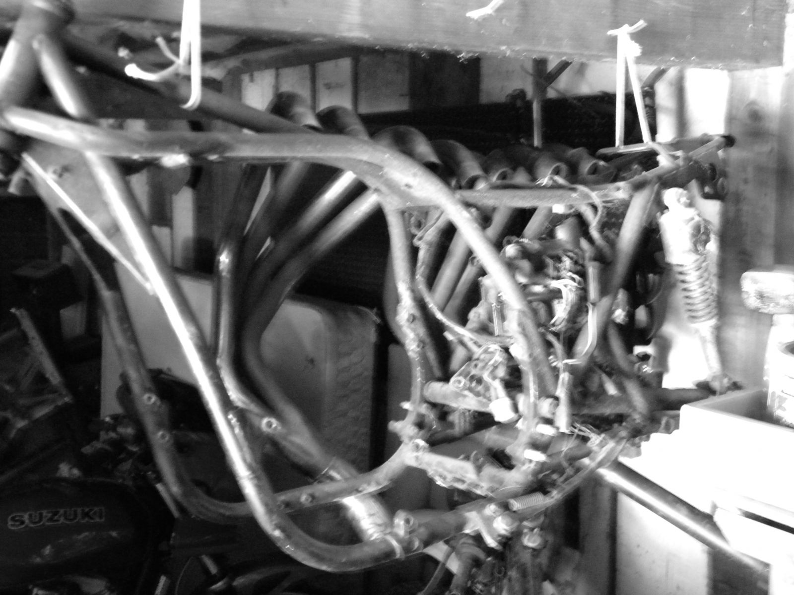 76 KZ, frame gusset work,1200CC.Ported by Larry Cavanaugh, 1.5mm.over intakes, Carron Pipe, ZRX12 rear end, and seat,96zx9 front end.