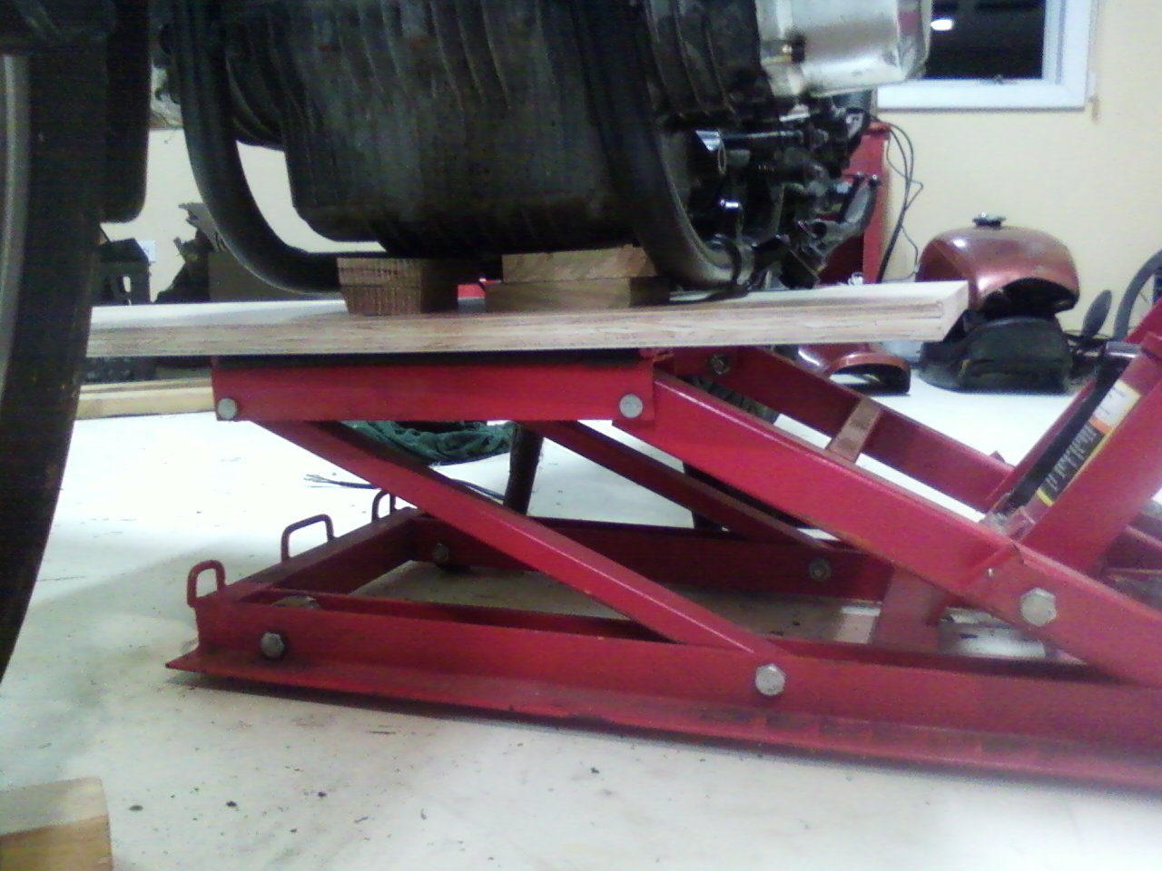 I usually just use my floor jack, but then the 900s and 1000s are about 100 lbs heavier then my 750