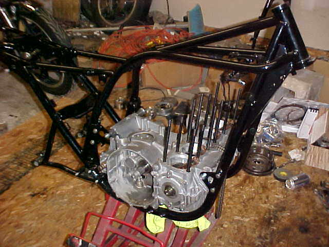 finally got a little bit done today. Got the crankshaft, trans and cases put back together. and installed in the frame.