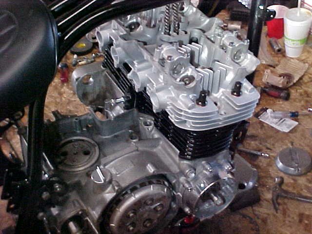 Got the clutch housing in. also got the pistons installed The cylinder head done by Larry C is next.