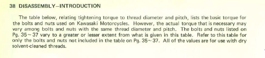 18 Apr 2022 07:06 - 18 Apr 2022 07:35But be careful about putting oil on the threads of bolts. The torque specs in the Kawasaki Service Manual are for dry threads, not oiled threads. EdIt has never been wrong to use oil on parts and contact surfaces during assembly, that was the first thing I learned and still do also on bolts