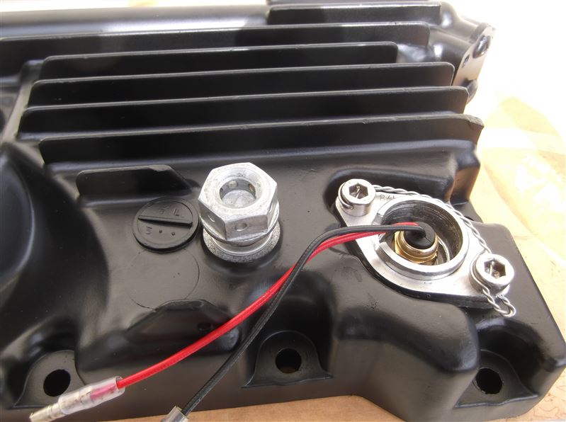 that AN fitting was over priced so I ripped the original oil level switich apart and tapped it 1/8 for a temp sender.