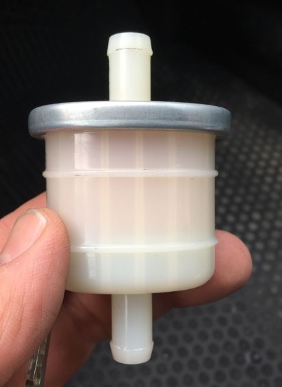 One caution: be sure that fuel filter is made for a "gravity feed" fuel system such as for a lawn mower, motorcycle, or similar. Many fuel filters are designed for high pressure applications and fuel may not flow well through them in your application.