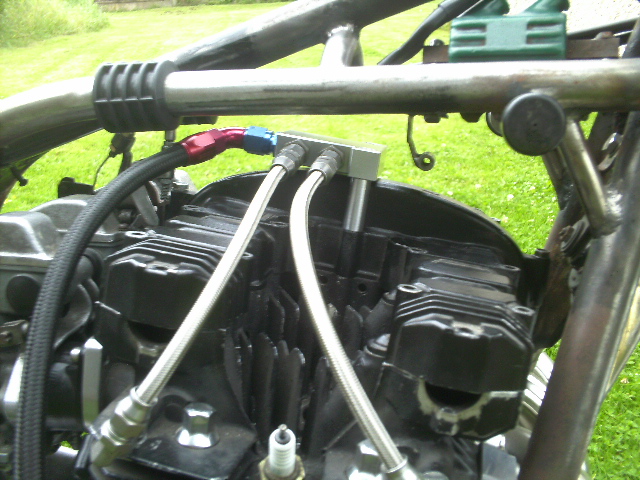 If I do go with the dry block I'll be using 10mm banjo bolts on AN4 fittings and will route them over the top as zed has done.